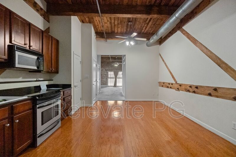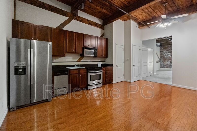 ** LOCKBOX WITH KEYS IS INSTALLED AT THE TWO BARS LOCATED ON THE INSIDE OF THE THRASH ENCLOSURE DOOR**Bright and airy 1-bedroom with soaring 14.5-ft ceilings, exposed pine beams, large windows, and in-unit laundry. Stylish kitchen with granite countertops and stainless steel appliances, plus a custom closet for extra storage.
